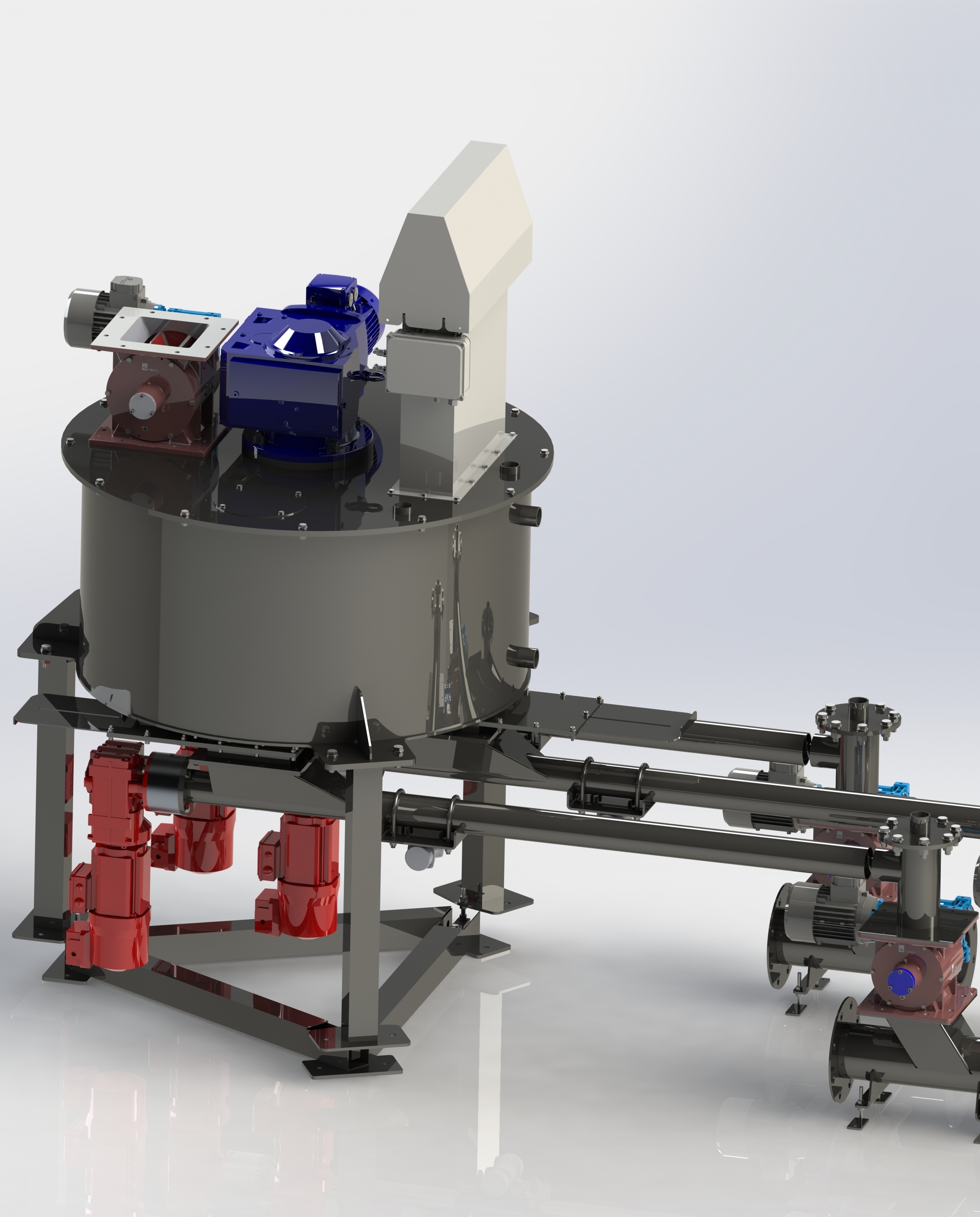 Gravimetric feeders with integrated blowers provide simplicity in installation and heatless pneumatic transport.